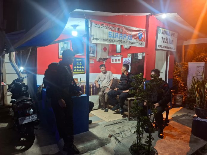 Satu regu yang terdiri dari 10 personel di bawah pimpinan Aipda Irwan melaksanakan patroli sambang di berbagai lokasi keramaian dan pos keamanan lingkungan.