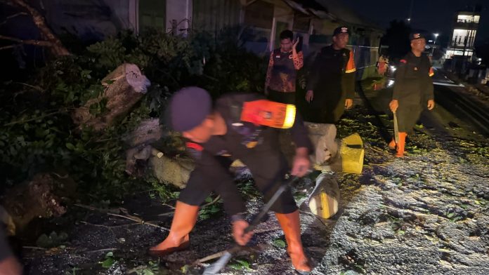 Brimob Polda Sumut Sigap Evakuasi Pohon Tumbang, Wujud Nyata Kehadiran di Tengah Masyarakat Pematangsiantar