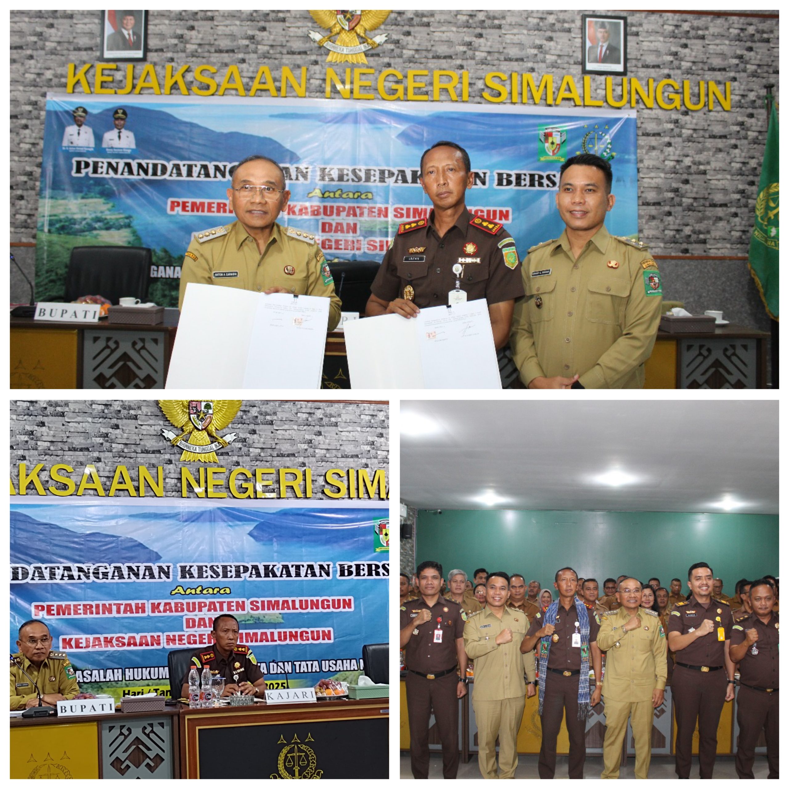 Penandatanganan nota kesepakatan bersama antara Pemerintah Kabupaten Simalungun dan Kejaksaan Negeri Simalungun disaksikan kepala organisasi perangkat daerah di lingkungan Pemkab Simalungun.