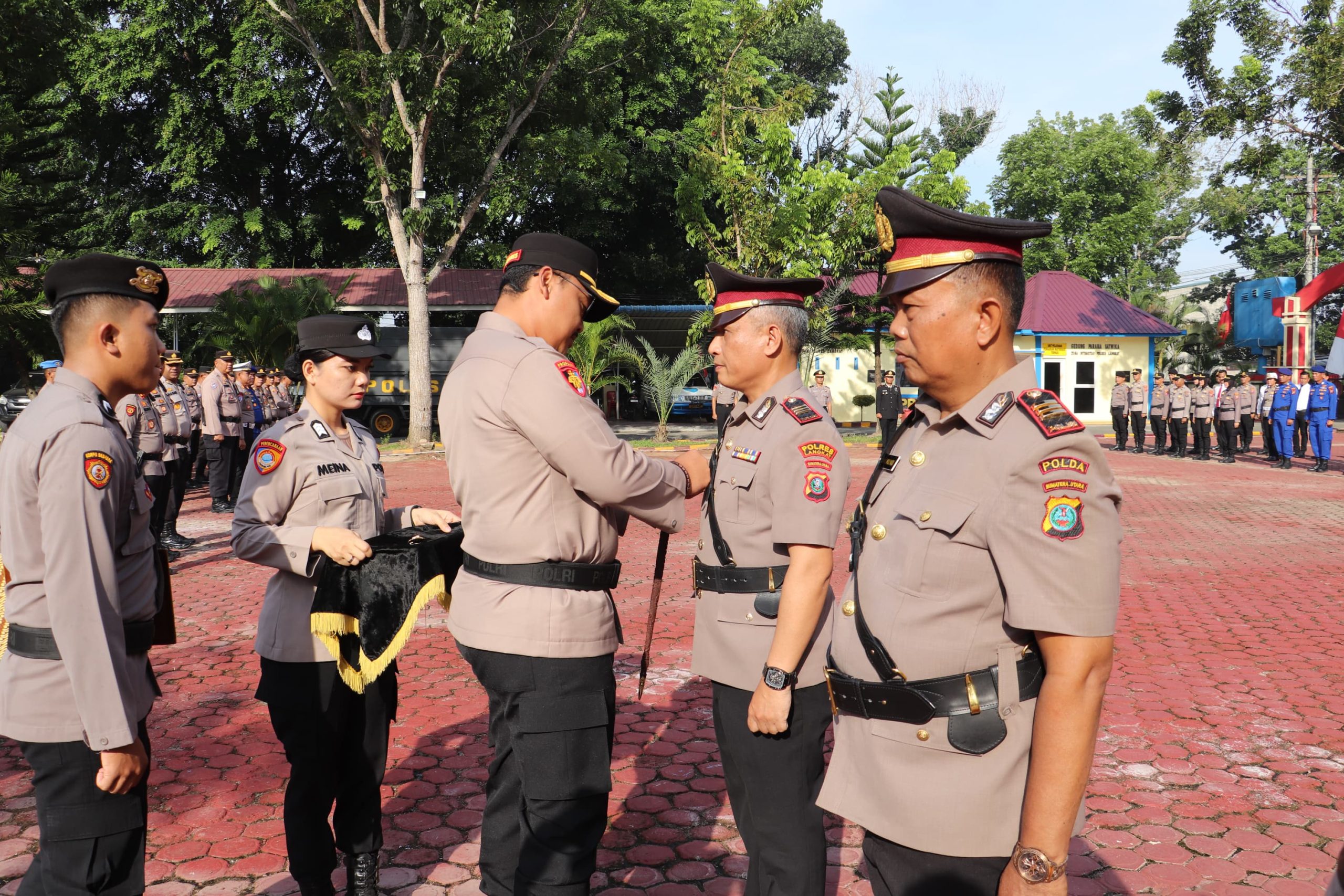 Acara Sertijab yang digelar di halaman Mapolres Langkat, turut dihadiri para pejabat utama (PJU), Perwira, dan personel gabungan, serta pengurus Bhayangkari cabang Langkat, Kamis (31/07/2025).