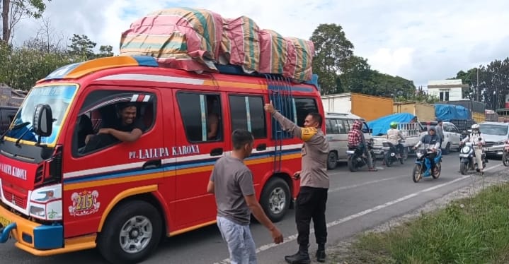 Merespon kondisi tersebut, Kapolres Toba bersama personel Satlantas Polres Toba dan Satlantas Polres Taput langsung turun dari kendaraan dinas dan dengan sigap mengatur arus lalu lintas agar kembali lancar.