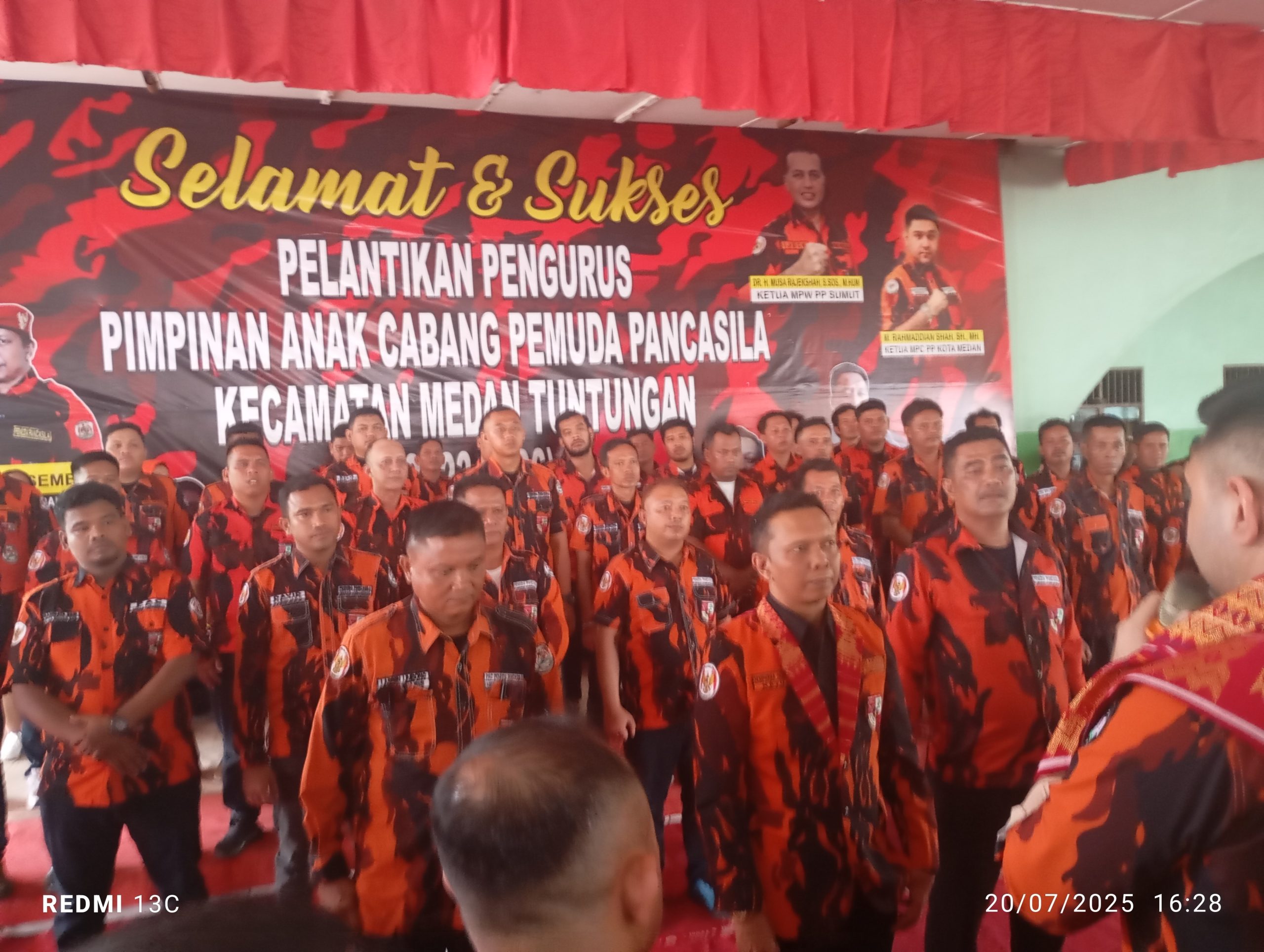 Medan Raja Pewarta. Com-Suasana meriah dan semangat kebersamaan mewarnai acara pelantikan Pimpinan Anak Cabang (PAC) Pemuda Pancasila Kecamatan Medan Tuntungan periode 2025–2029 yang digelar pada Minggu sore (20/7/2025), pukul 16.30 WIB. Acara berlangsung di Jambur Halilintar, Jalan Jamin Ginting, Simpang Selayang, Kecamatan Medan Tuntungan.