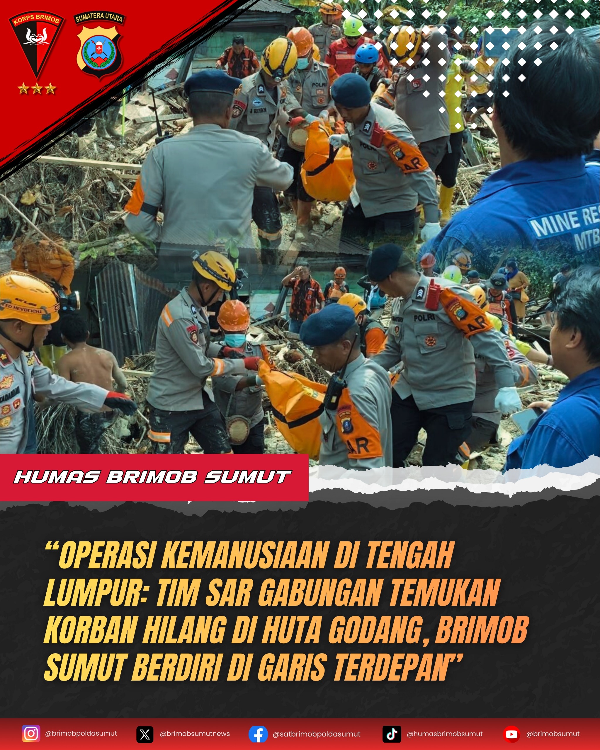 RajaPewarta-Tapanuli Selatan —Tragedi banjir dan longsor di wilayah Tabagsel kembali menyisakan duka mendalam. Namun di balik puing dan lumpur, tim gabungan SAR menunjukkan keteguhan hati dalam menjalankan misi kemanusiaan. Sejak Kamis pagi pukul 08.00 WIB, Personel Batalyon C Pelopor Sat Brimob Polda Sumut, bersama K-9 SAR Dit Polsatwa Baharkam Polri, K-9 SAR Polda Sumut, dan Basarnas, melakukan operasi pencarian korban hilang di Desa Huta Godang, Kecamatan Batang Toru. Kamis (4/12/2025).