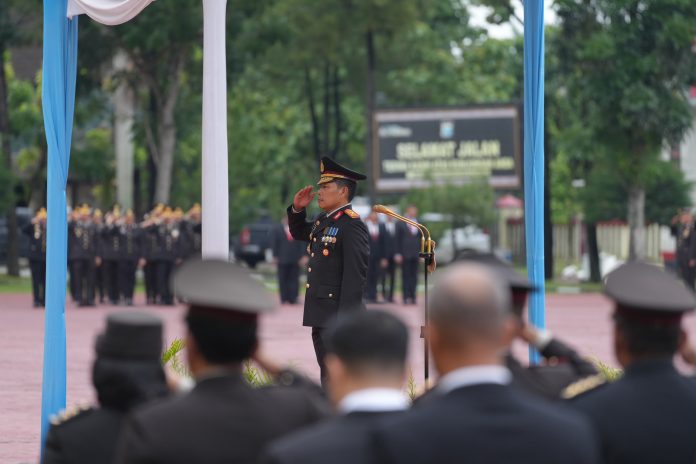 Upacara yang dimulai pukul 08.00 WIB itu dipimpin langsung oleh Wakapolda Sumatera Utara, Brigjen Pol Rony Samtana, S.I.K., M.T.C.P., mewakili Kapolda Sumut dan diikuti oleh para Pejabat Utama (PJU) Polda Sumut serta seluruh personel Polda Sumut.