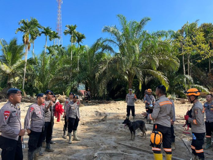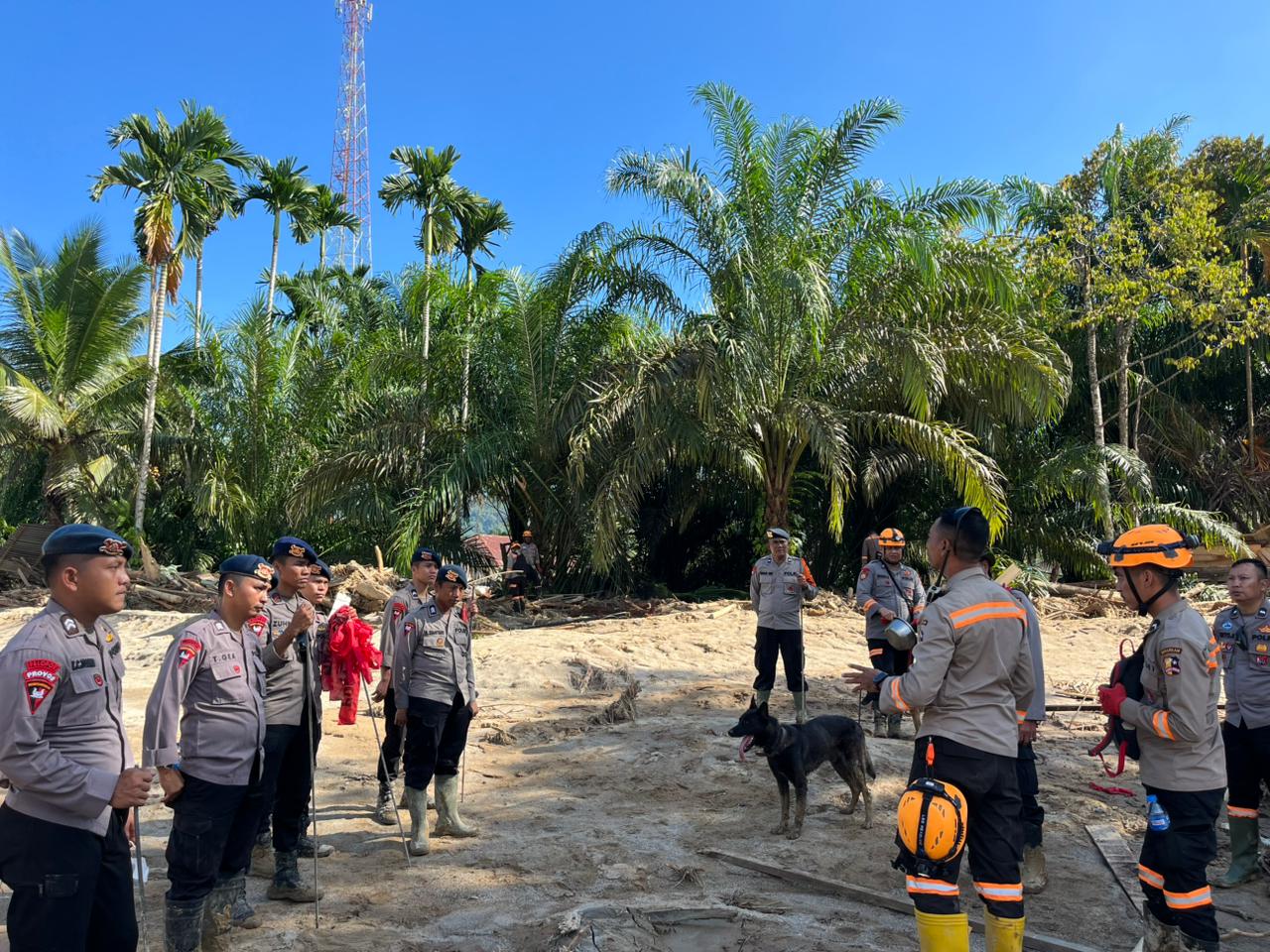 “Saat ini personel Brimob bersama Tim K9 Baharkam Polri fokus melakukan pencarian terhadap korban yang diduga tertimbun material banjir bandang. Setiap titik yang berpotensi menjadi lokasi tertimbunnya korban disisir dengan metode manual dan bantuan anjing pelacak,” ujar Kombes Pol Ferry.