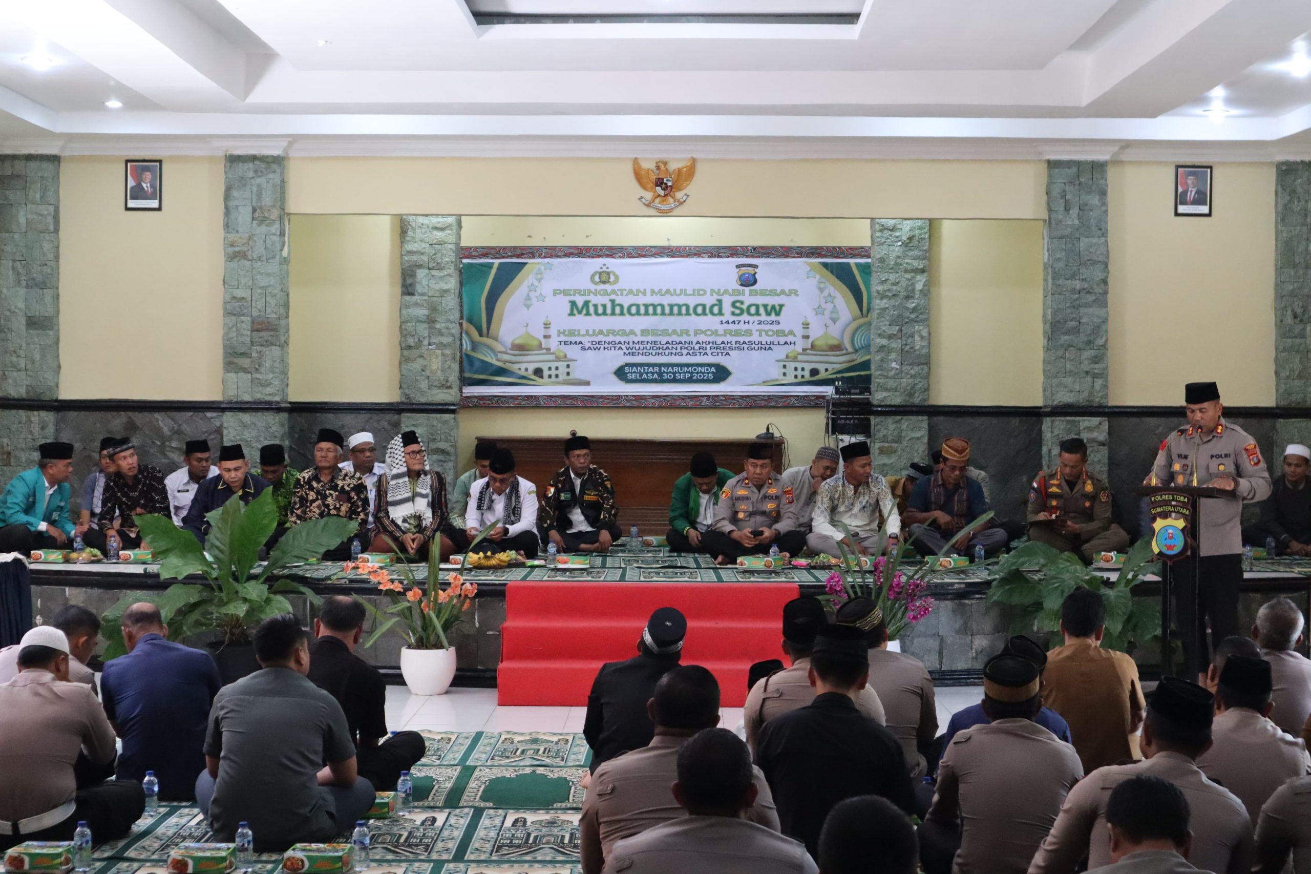 TOBA- RajaPewarta. Com-30 September 2025 – Polres Toba menggelar Acara Perayaan momen Maulid Nabi Besar Muhammad SAW 1447 H/2025 M di Aula Harungguan Mardemak Polres Toba, Selasa (30/9/2025)