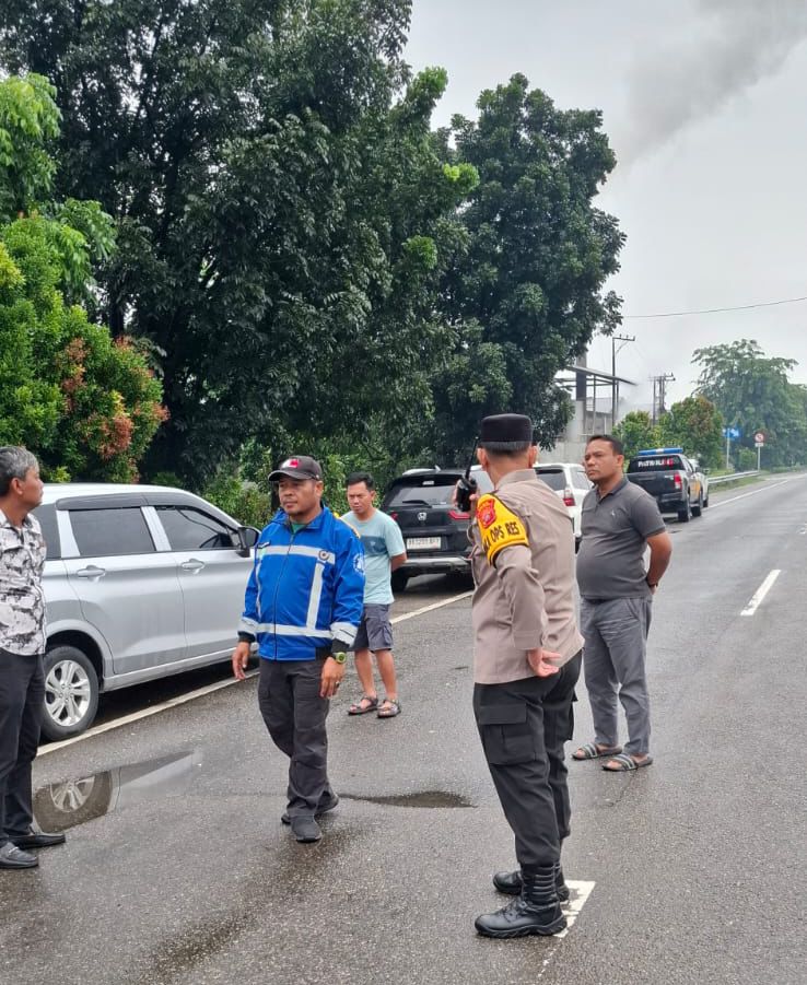Ia menegaskan bahwa rekayasa lalu lintas ini dilakukan demi menjaga keselamatan pengguna jalan sekaligus mencegah terjadinya kemacetan total di titik banjir. Tampak Wakapolres Pelabuhan Belawan Kompol Dedy Dharma, SH., juga turut memantau dilokasi tersebut.